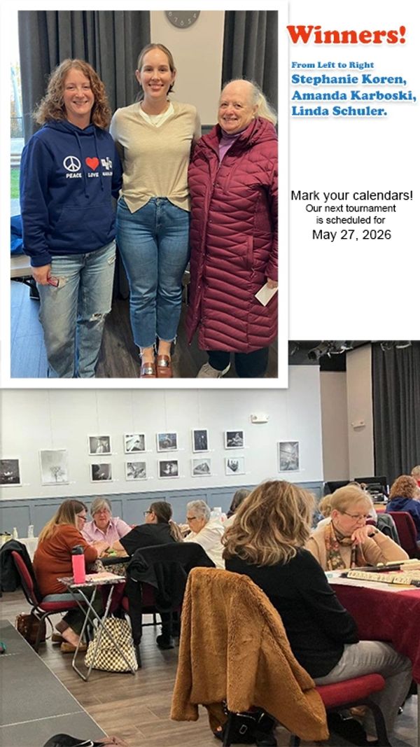 A heartfelt thank you our AAUW Member-volunteers who donated door prizes. Others donated their time to help set up welcome snacks and buffet lunch, register guests, and score tournament results.